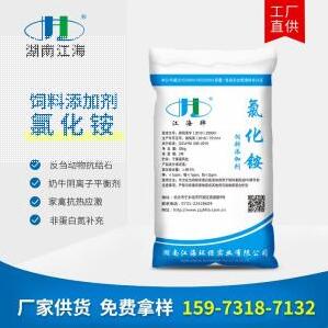 湖南江海環(huán)保實業(yè)公司生產的飼料級氯化銨是以農用或工業(yè)氯化銨為原料經過去雜、提純等工藝精制而成。產品純度高,重金屬離子含量低等特點。能作為非蛋白劑補充反芻動物蛋白質營養(yǎng),也被廣泛作為反芻動物抗結石劑,奶牛產前的陰離子平衡劑,家禽抗熱應激藥物,應用前景十分廣泛。 產品包裝 內塑外編或按客戶要求 批準文號 湘飼添字(2019)230001 執(zhí)行標準 Q...